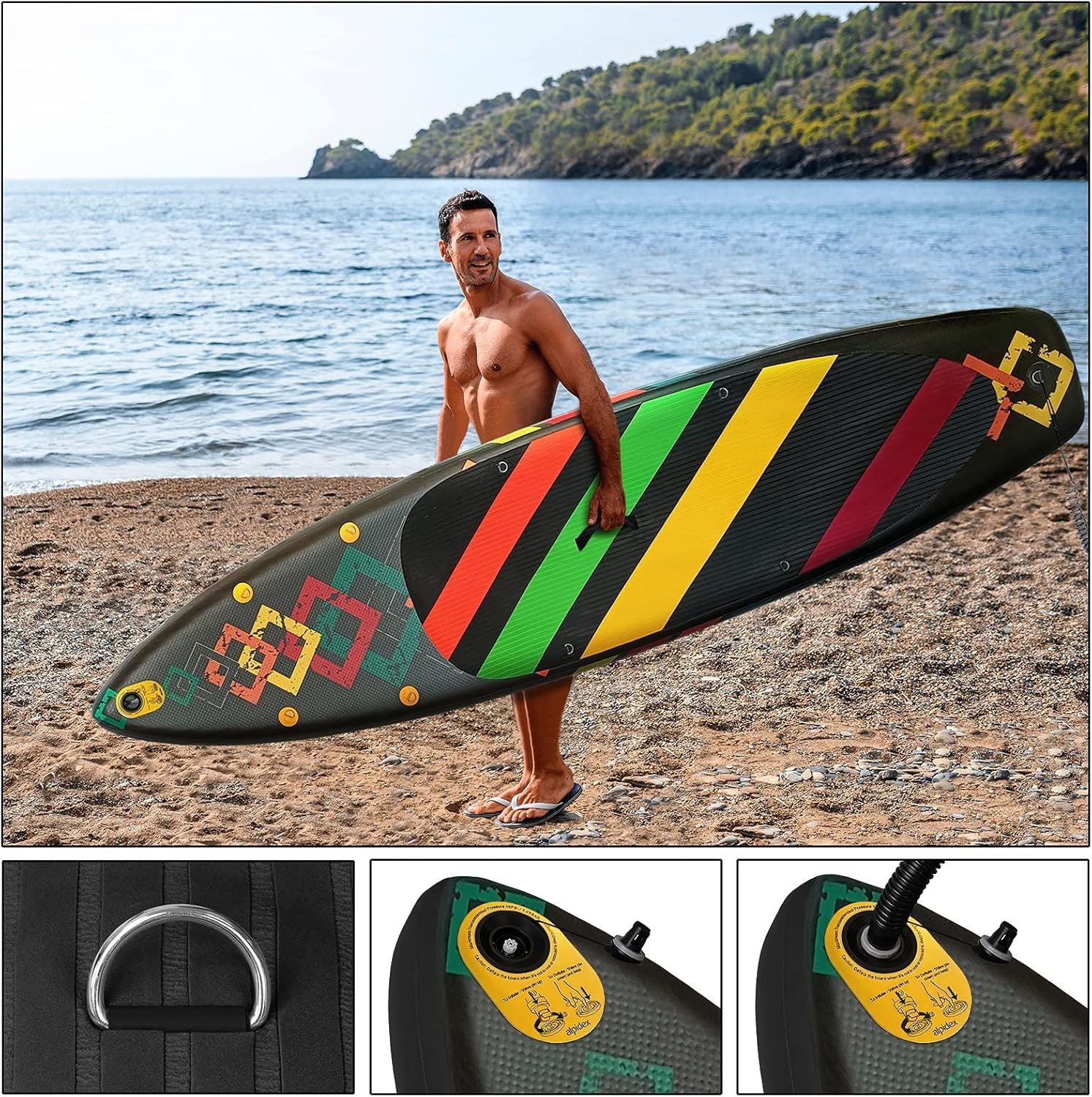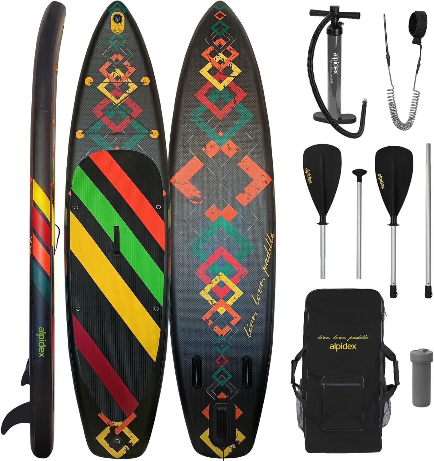 ALPIDEX Stand Up Paddle Set SUP 320 x 76 x 15 cm max. belastbar bis 200 kg Aufblasbar Stabil Leicht Komplett Set Tragetasche Paddel Finnen Luftpumpe Leash Repair Kit