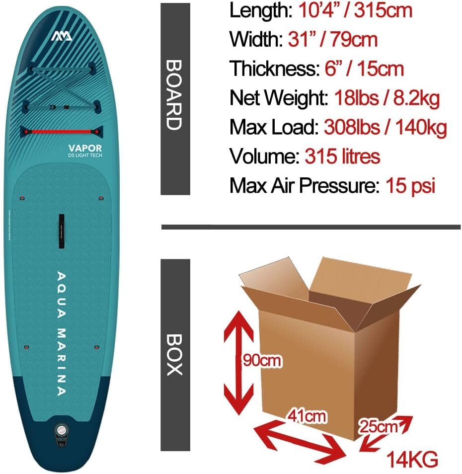 Aqua Marina Vapor SUP Aufblasbares Stand Up Paddle Board mit Paddel, Leine, Magic Rucksack und Double Action Pumpe