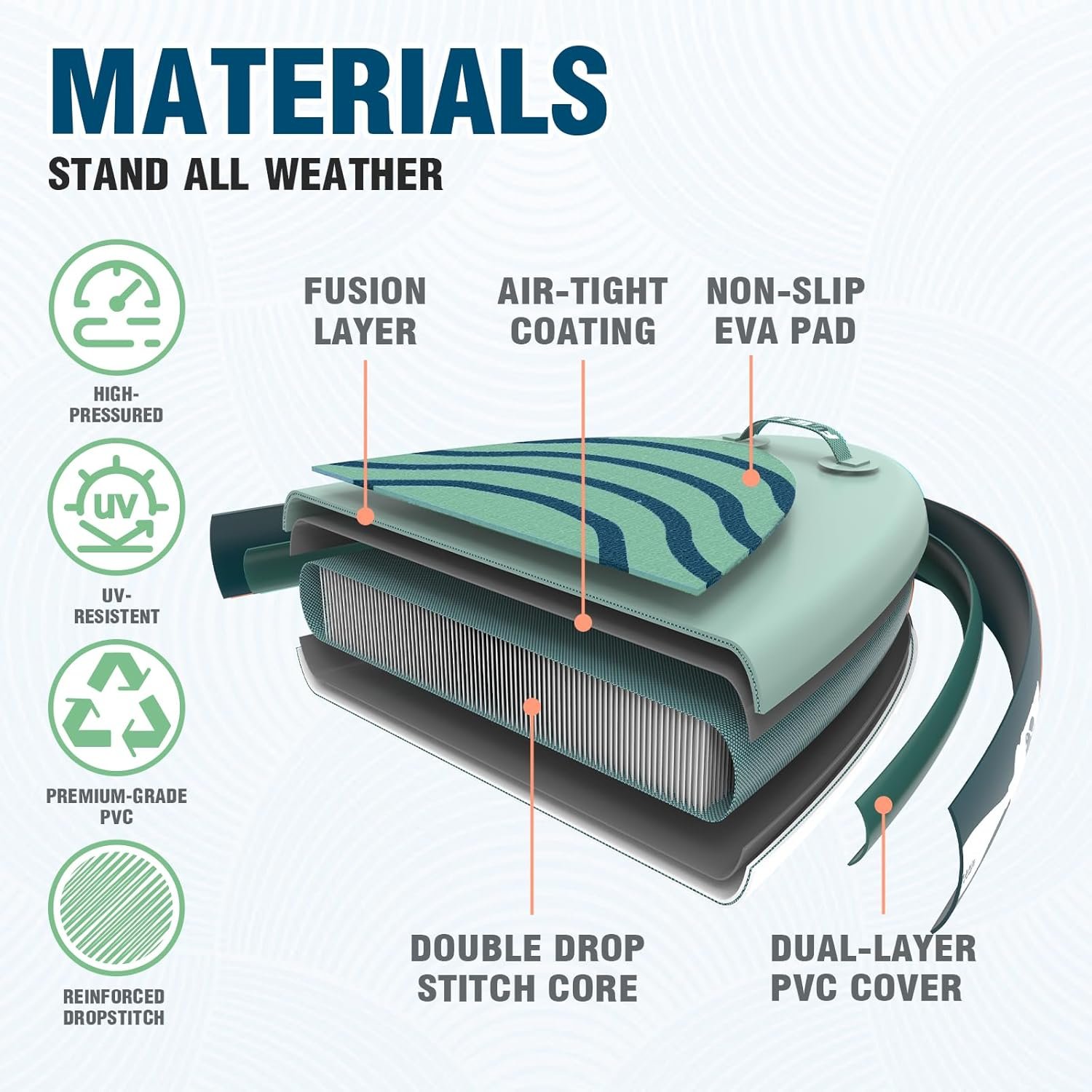 - 【Hochwertiges PVC Material】Hergestellt aus robustem, hochwertigem PVC-Material in Kombination mit Doppelnaht-Technologie. Widerstandsfähig gegenüber Sonneneinstrahlung, Salzwasser und Steinen, speziell für die Nutzung auf Seen, Flüssen und im Meer konzipiert